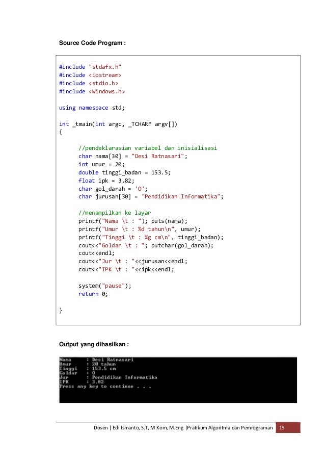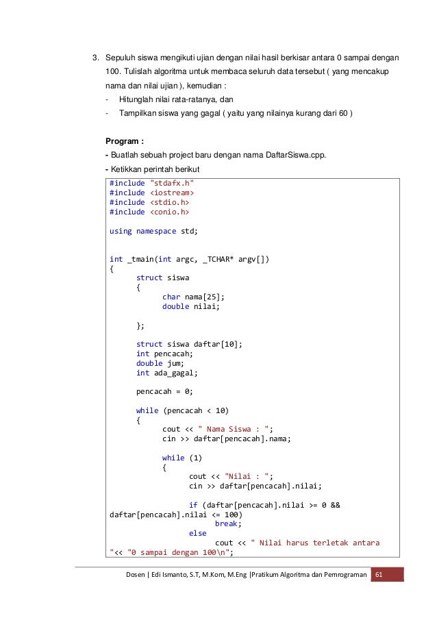 Dosen | Edi Ismanto, S.T, M.Kom, M.Eng |Pratikum Algoritma dan Pemrograman 61