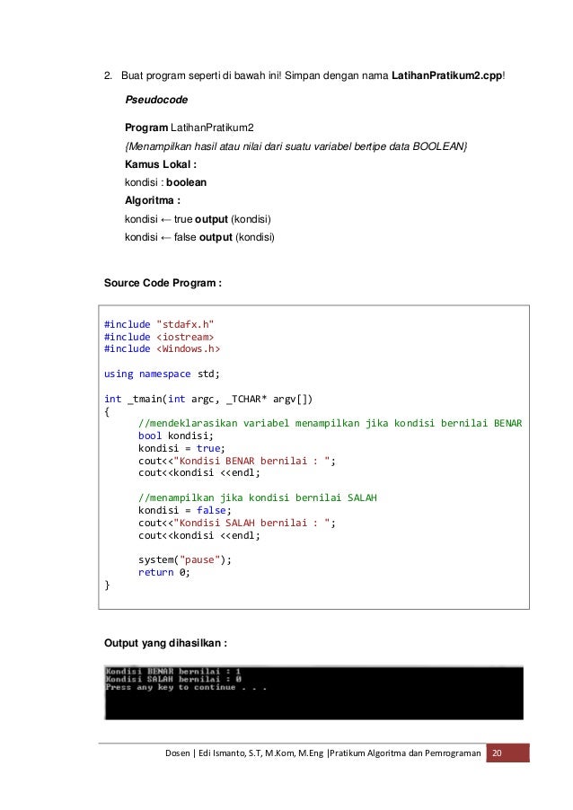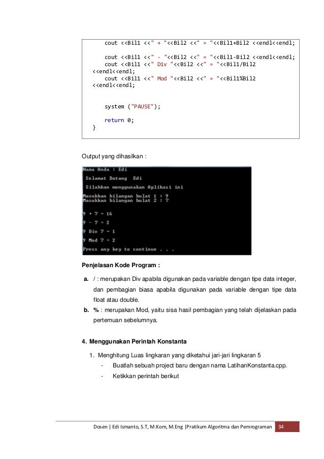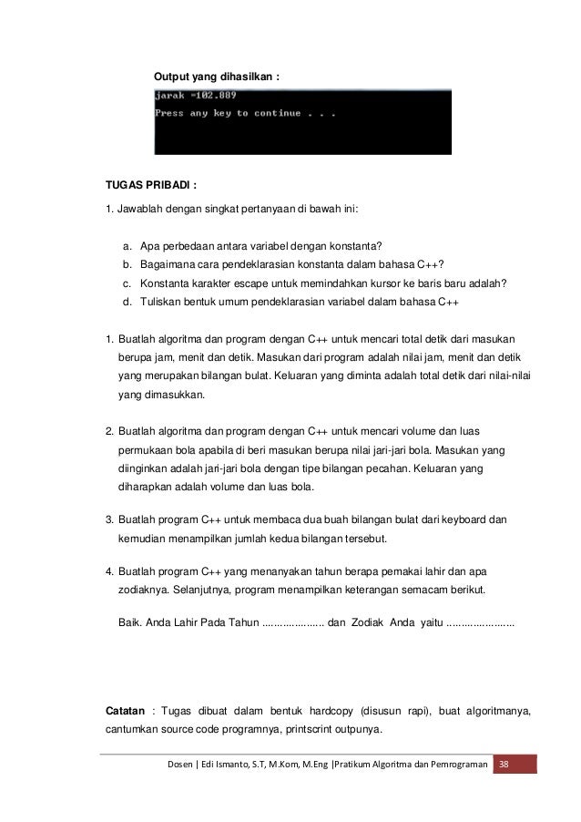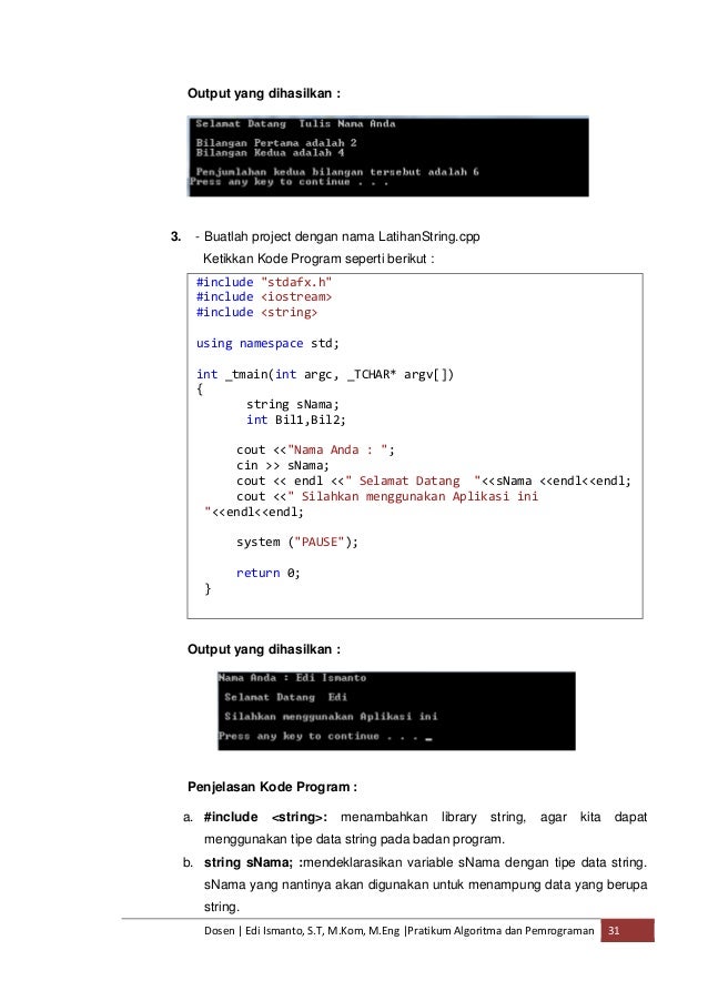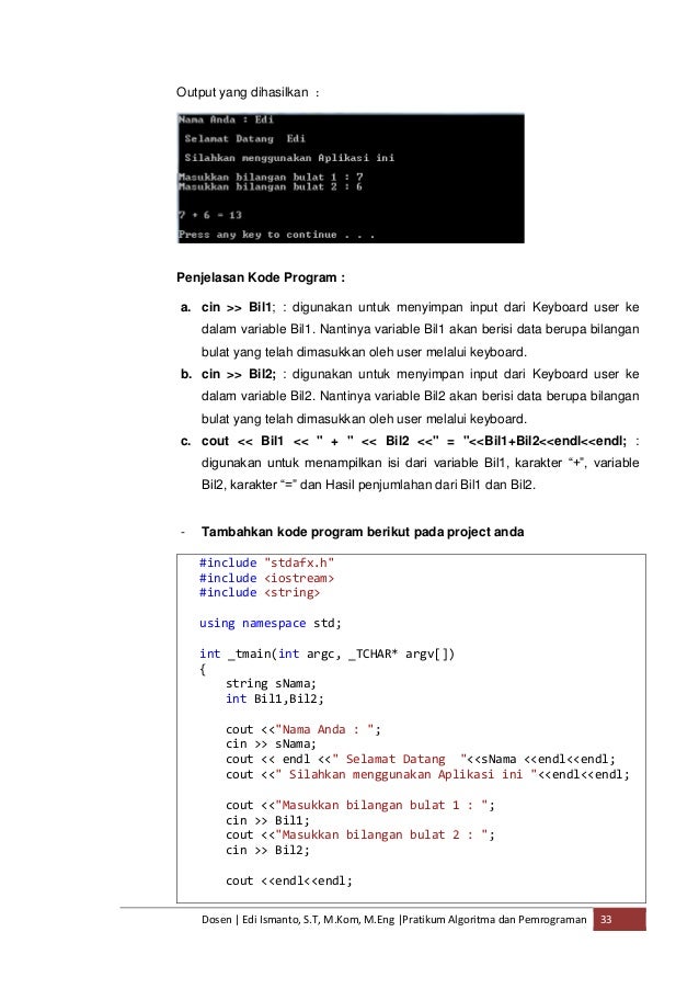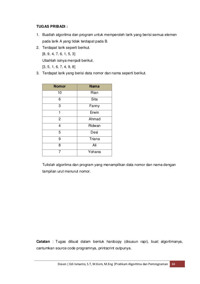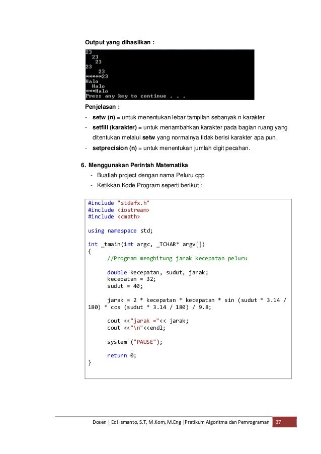 Dosen | Edi Ismanto, S.T, M.Kom, M.Eng |Pratikum Algoritma dan Pemrograman 64