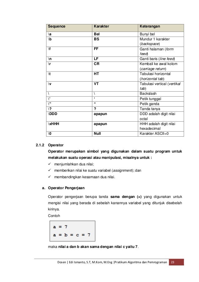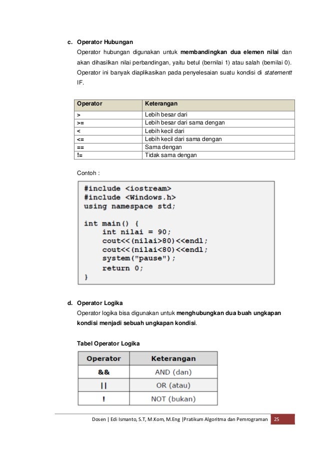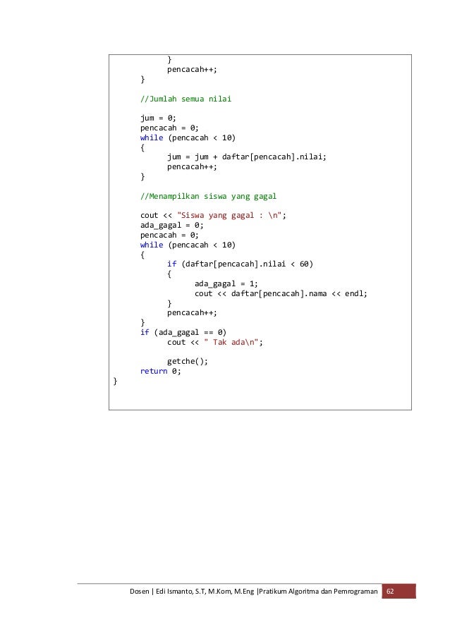 Dosen | Edi Ismanto, S.T, M.Kom, M.Eng |Pratikum Algoritma dan Pemrograman 62