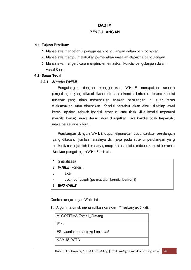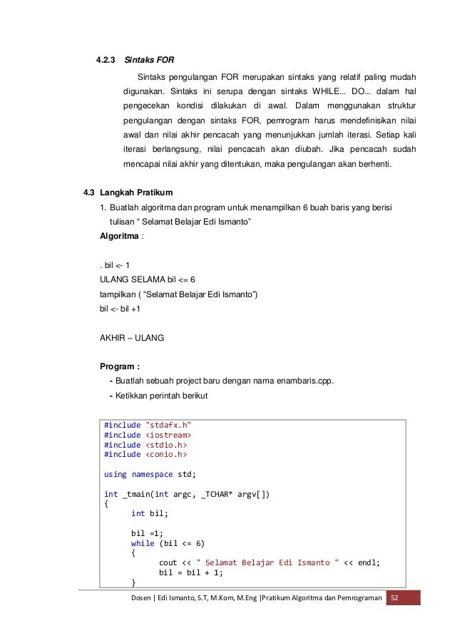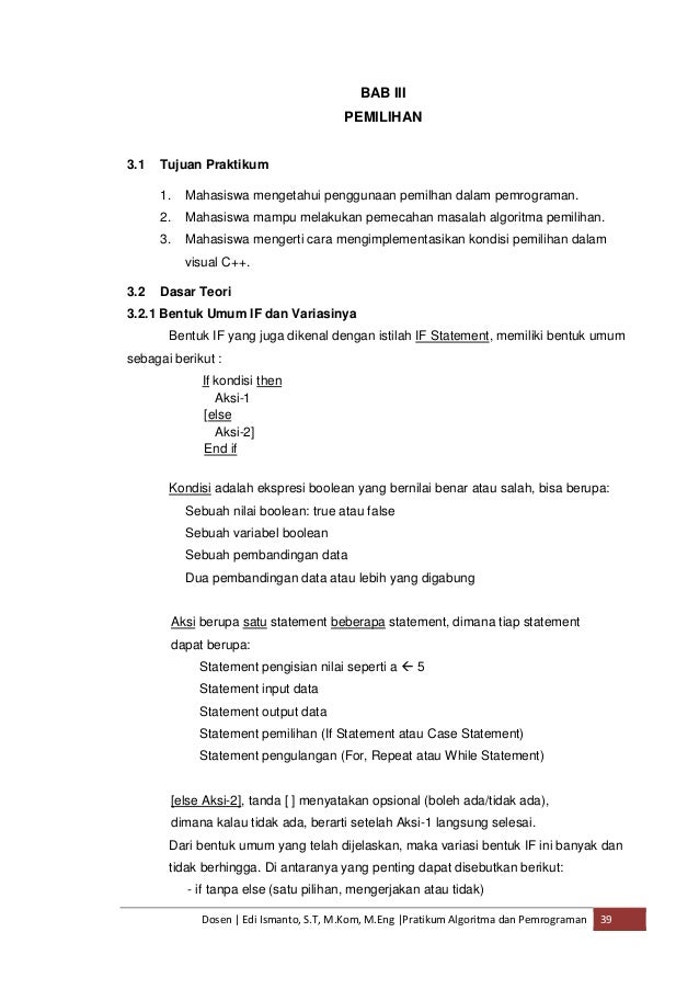 Dosen | Edi Ismanto, S.T, M.Kom, M.Eng |Pratikum Algoritma dan Pemrograman 59