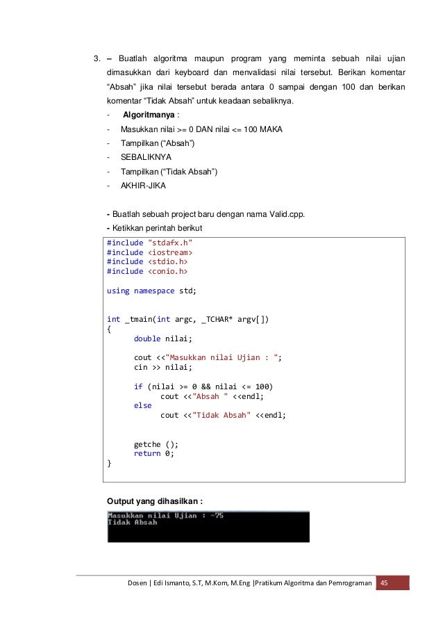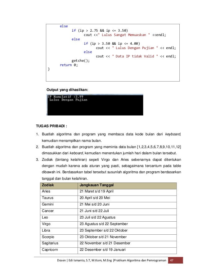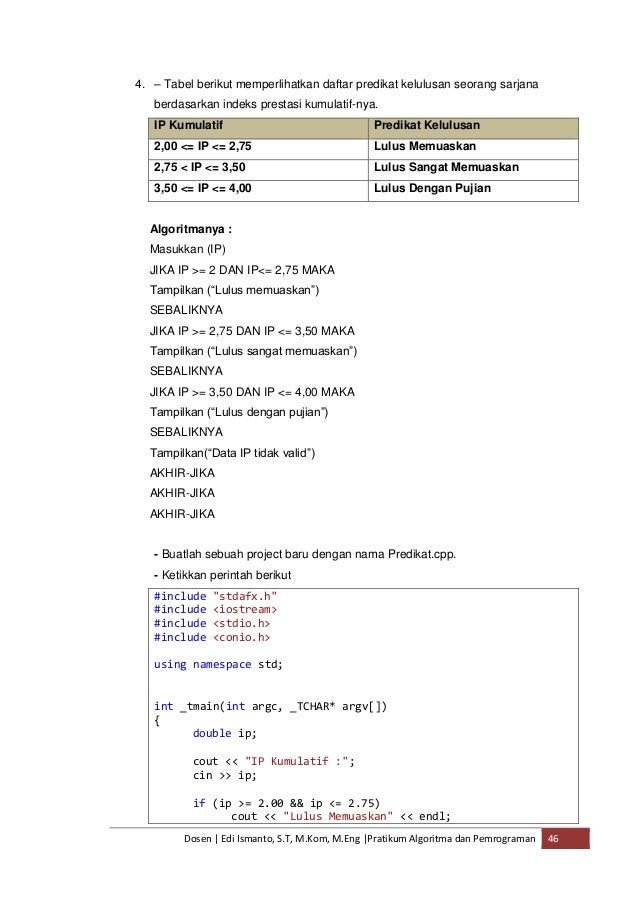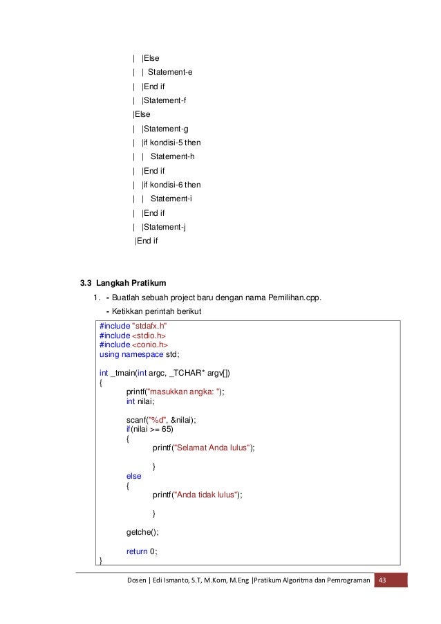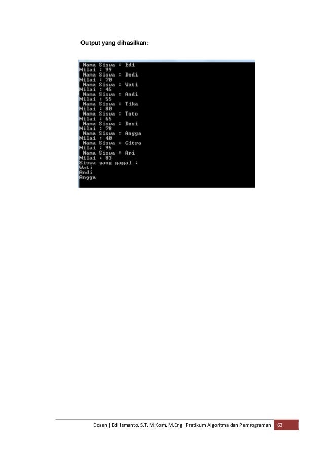 Dosen | Edi Ismanto, S.T, M.Kom, M.Eng |Pratikum Algoritma dan Pemrograman 63