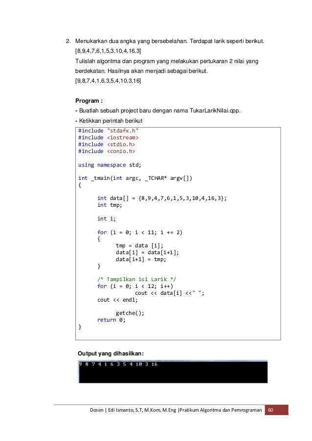 Dosen | Edi Ismanto, S.T, M.Kom, M.Eng |Pratikum Algoritma dan Pemrograman 60